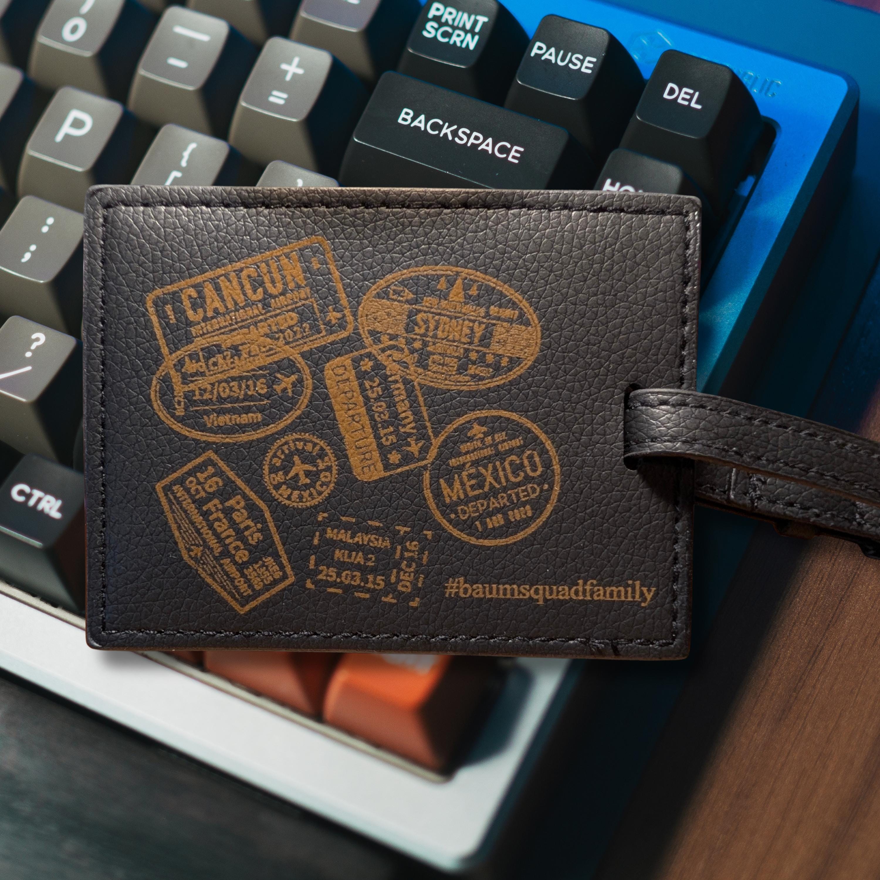 ► WHY YOU'LL LOVE IT ◄ • Fully Personalized: You provide the list of countries or cities for the simulated stamps. • Optional Custom Text: Add a name, date, or message. • High-Tech Option: Add a programmable NFC chip for smart functionality. • Durable Material: Made from high-quality, weather-resistant PU (vegan) leather. • Expertly Engraved: Clean, precise laser engraving for a tag that lasts.